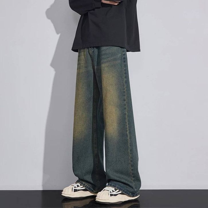 Baggy Jeans Gombrong Pria Celana Panjang Jeans Skena UNISEX Whisker Biru Retro Premium