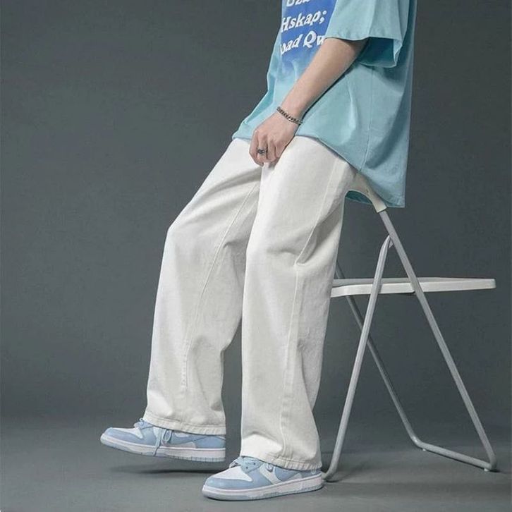 Celana Jeans Pria Korean Styl Baggy Pants Panjang Straight Loose White Regulerfit ABS Jeans Denim