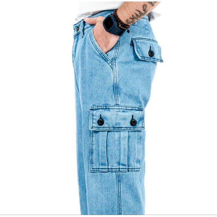 SkyLooks.id-Celana Jeans Cargo Panjang Pria Longgar//Jeans Panjang Kantong Samping Gombrong Hight Waits Beggy