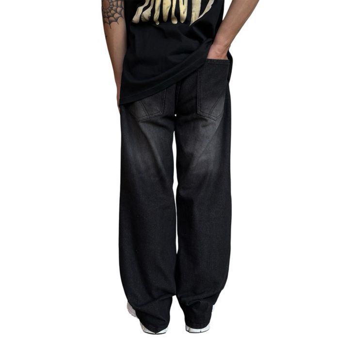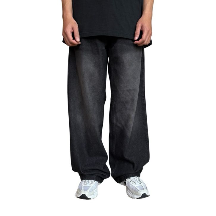 YSPANTS - CELANA BAGGY JEANS NON STRIP WIDE LEG BLACK WHISKER