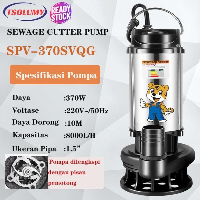 TSOLUMY Pompa Celup Air Kotor 370Watt Stainless Steel Pompa Penghisap Air Lumpur Mesin Pompa Air Celup Pemotong