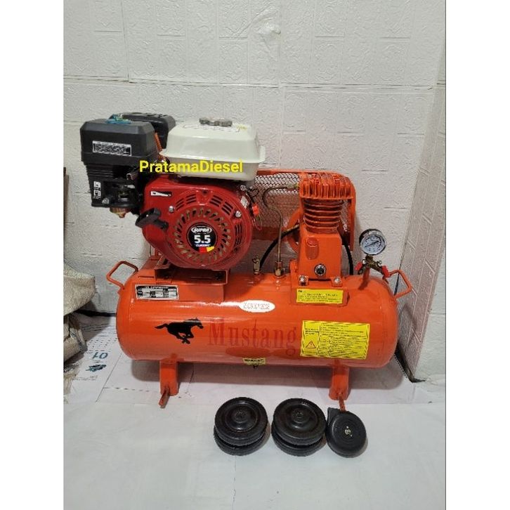 Kompresor Angin 1/4 HP MUSTANG+Mesin Penggerak 160 Komplit Selang 6Meter Airduster Pentil Angin AirBlowGanCoupler