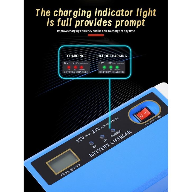 PROMO NEW Premium Charger Aki Mobil Motor Lead Acid 12-24V 10A with LCD -Biru, Bisa Bayar Ditempat/Charger Aki