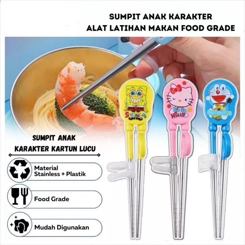 Algan25 Sumpit Latihan Anak Karakter Lucu Stainless / Belajar Makan Bayi Balita Motif