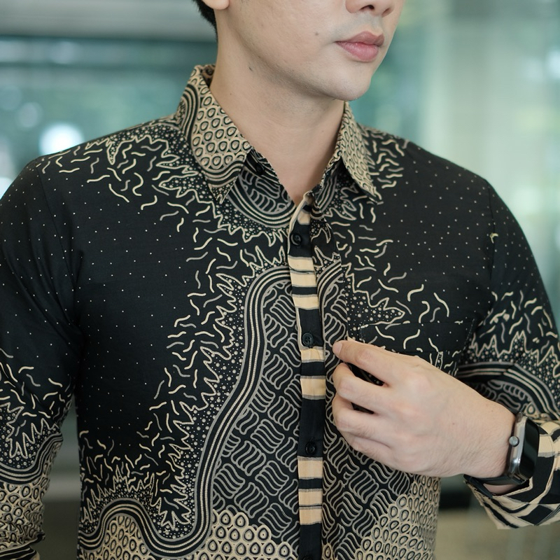 BARA HITAM Kemeja batik pria lengan panjang full furing slimfit katun halus lembut