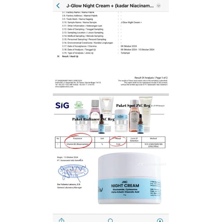 Jglow Skincare paket Radiance Whitening cream malam jnc - 5pcs