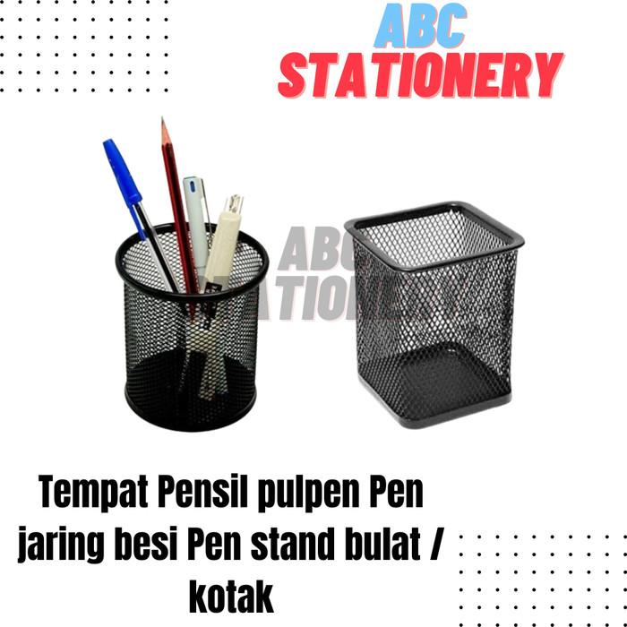 Tempat Pensil pulpen Pen jaring besi Pen stand bulat / kotak Alat Kantor - Kotak