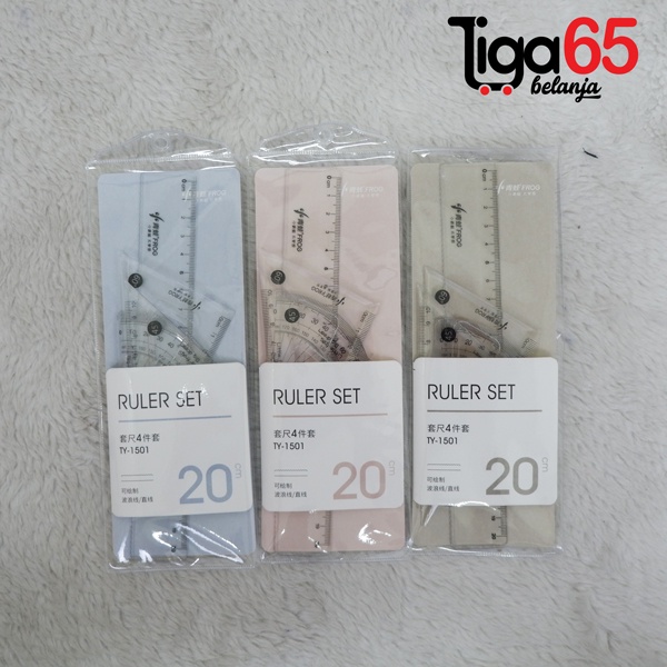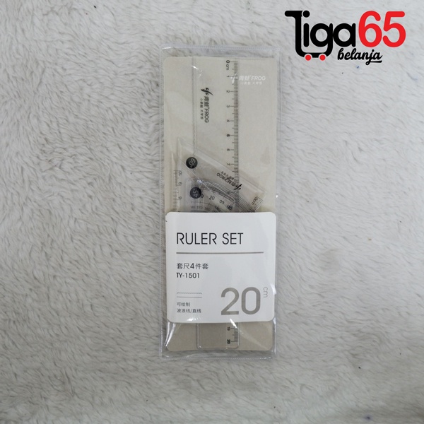 Penggaris Set 20Cm #40912 Paket Penggaris / Penggaris Set Plastik 20Cm 5In1 Extetik