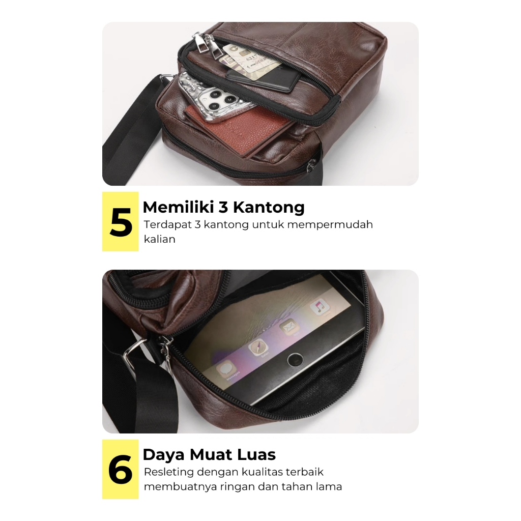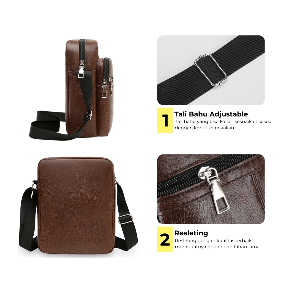 Tas Selempang Pria Kekinian Terbaru Bahan Kulit Sintesis Waterproof Terlaris High Quality