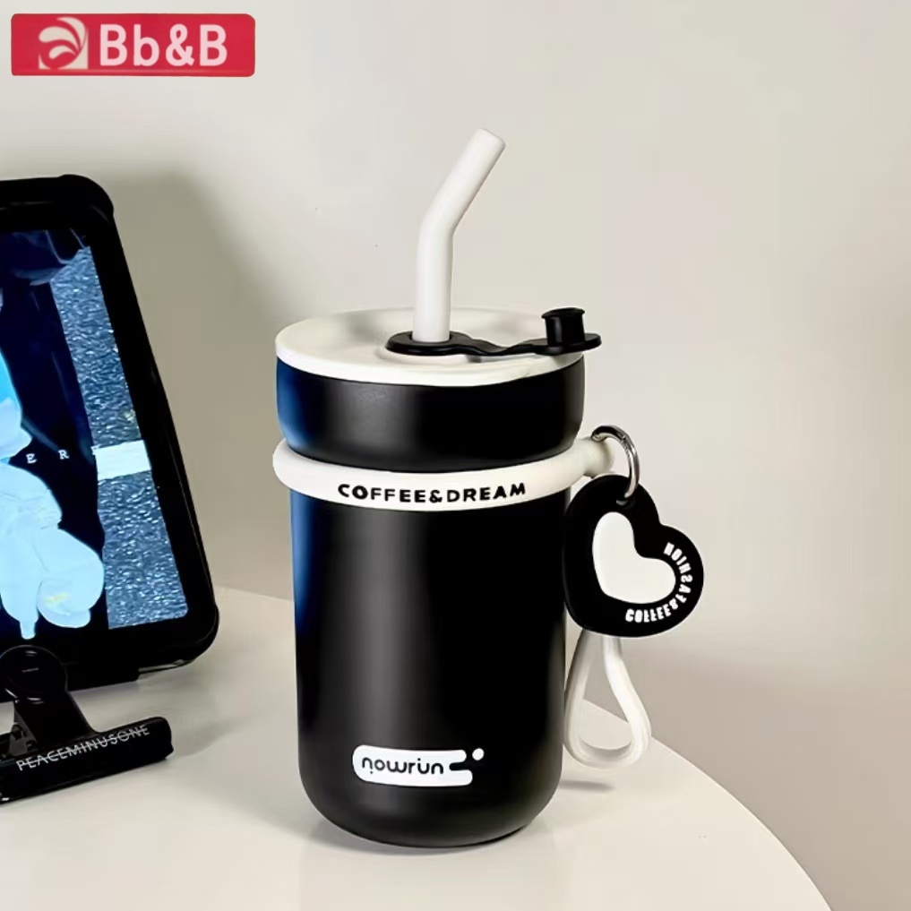 Bb&B-242 Botol minum 500ml cangkir Kopi dengan jerami Termos botol air Es kopi Amerika Mug tumbler