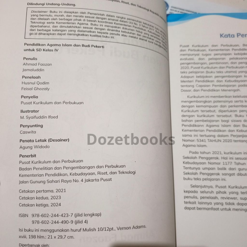 Buku paket agama islam kelas 4 SD/MI kurikulum merdeka untuk siswa