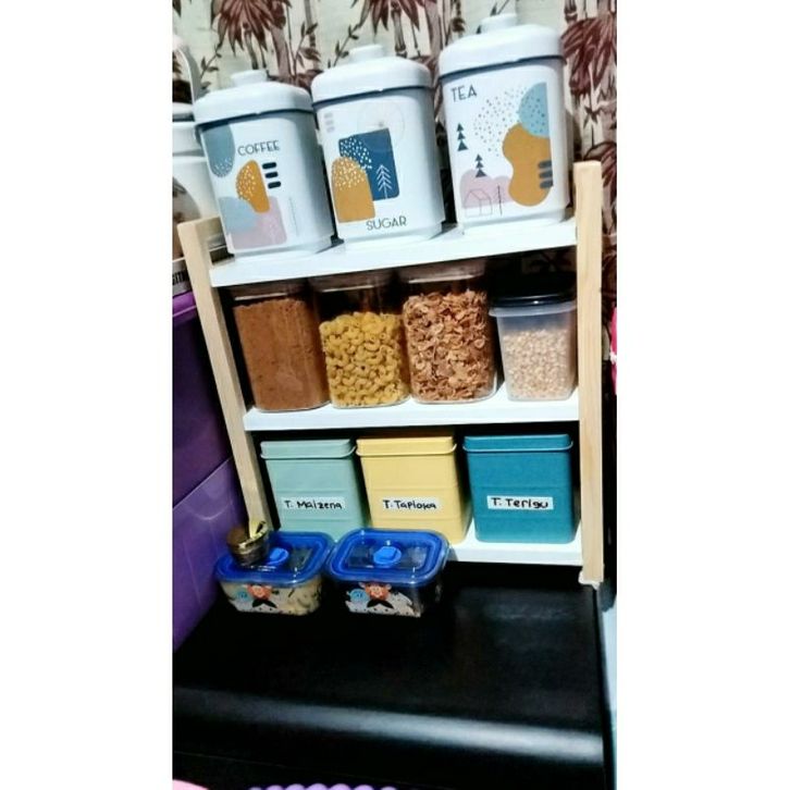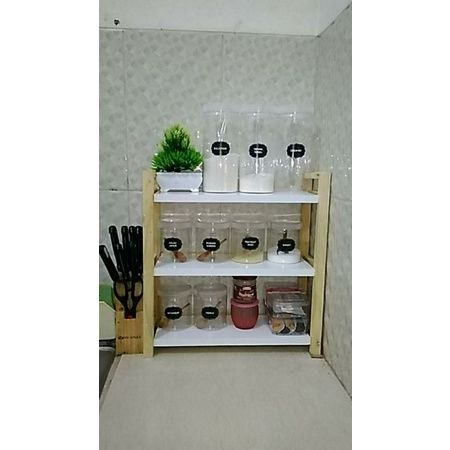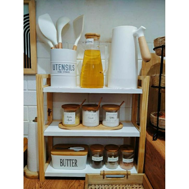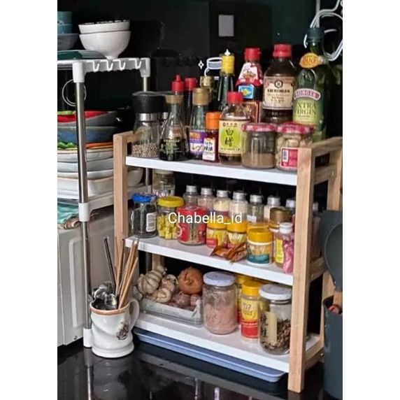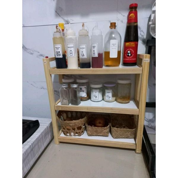 Rak Susun Serbaguna Rak 3 Tingkat Rak Multifungsi Premium Rak Kayu Serbaguna Rak Duduk Bumbu Dapur Rak Buku Estetik