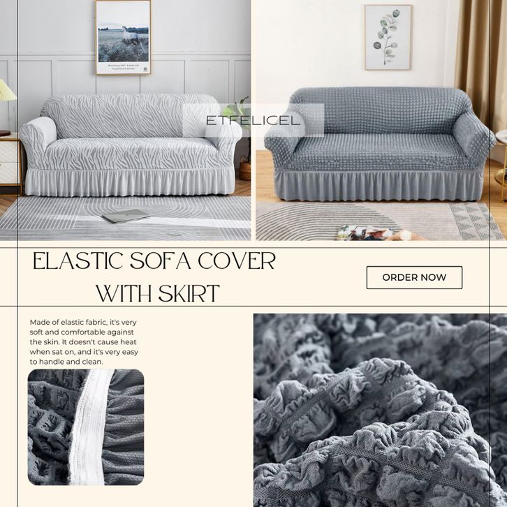 Sofa Cover With Skirt / Sarung Sofa Alas Penutup Sofa Renda Elastis Polos Strecth