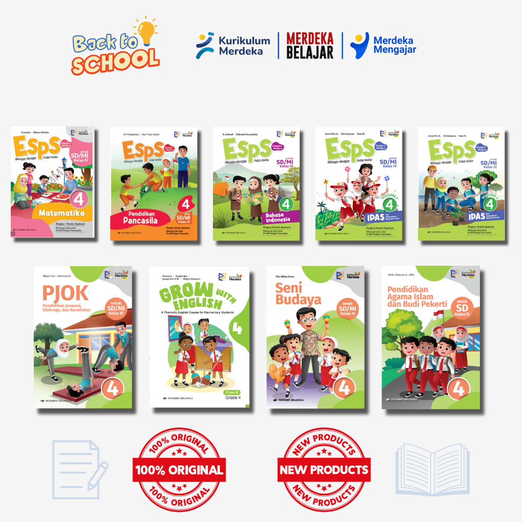 GROW WITH ENGLISH 4, ESPS B. INDONESIA 4, ESPS IPAS 4 VOL. 2, PJOK, SENI BUDAYA 4, ESPS MTK 4, P PANCASILA REVISI 4, ESPS IPAS 4 VOL. 1