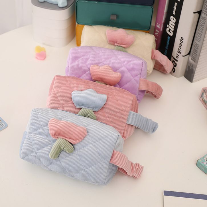 Tas Kosmetik Corduroy Tulip Tas Penyimpanan Cuci Kapasitas Besar Tas Tangan Portabel Pouch Makeup Aesthetic Tulip Flower