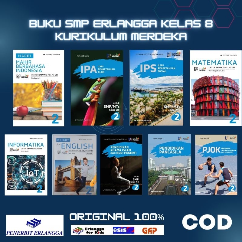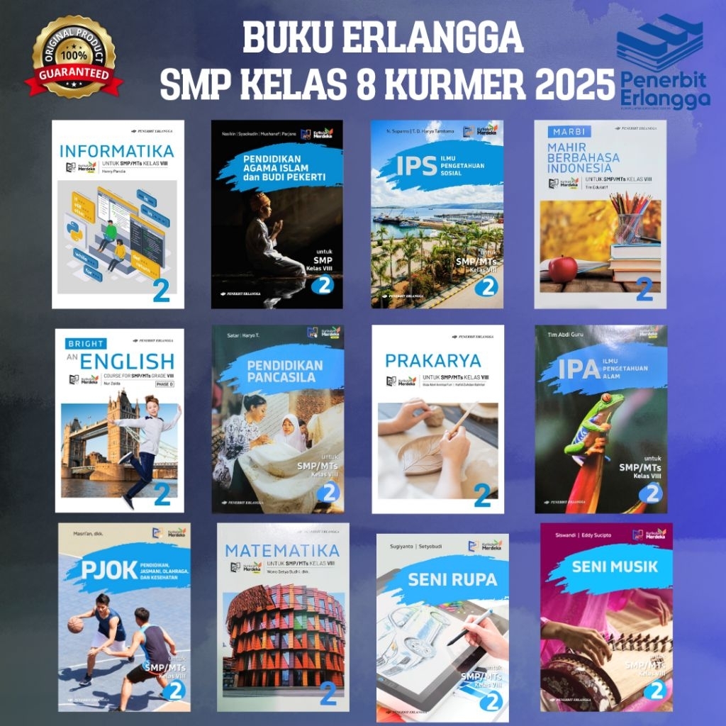 BUKU SMP KURIKULUM MERDEKA KELAS 8 ERLANGGA MTK INDO IPA IPS PJOK INFOR ING PAI