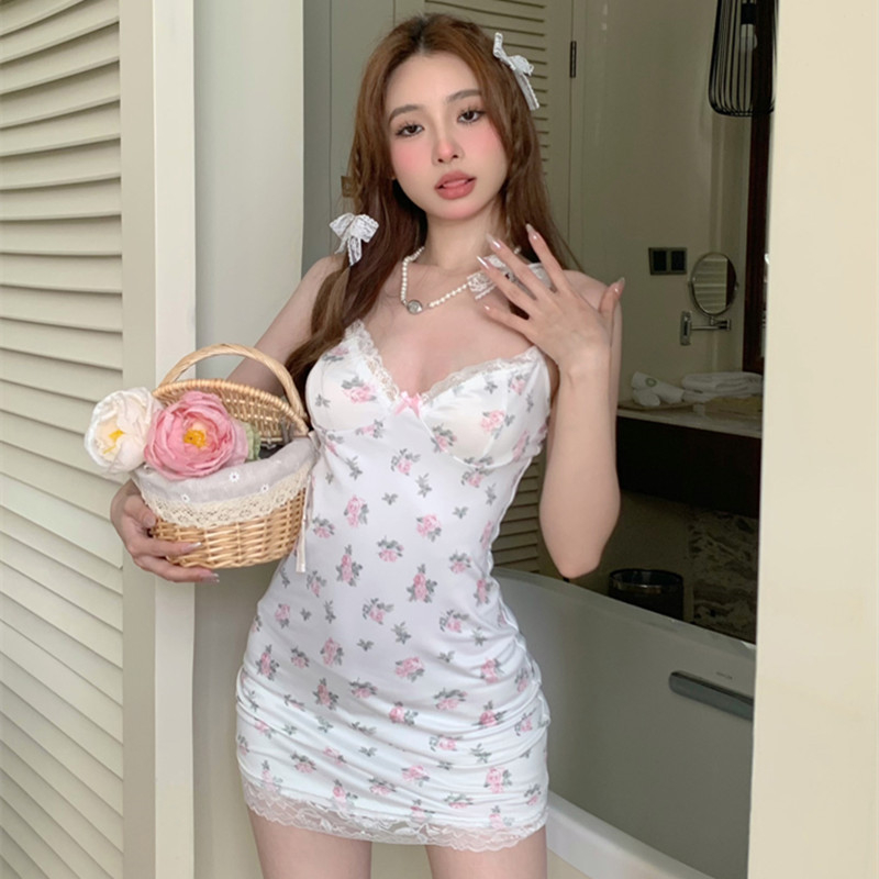 Dress Sweet Import DS-2379 French Cute Santai Manis Santai Liburan Dress Manis Korean Dress Motif Bunga Mimon Home