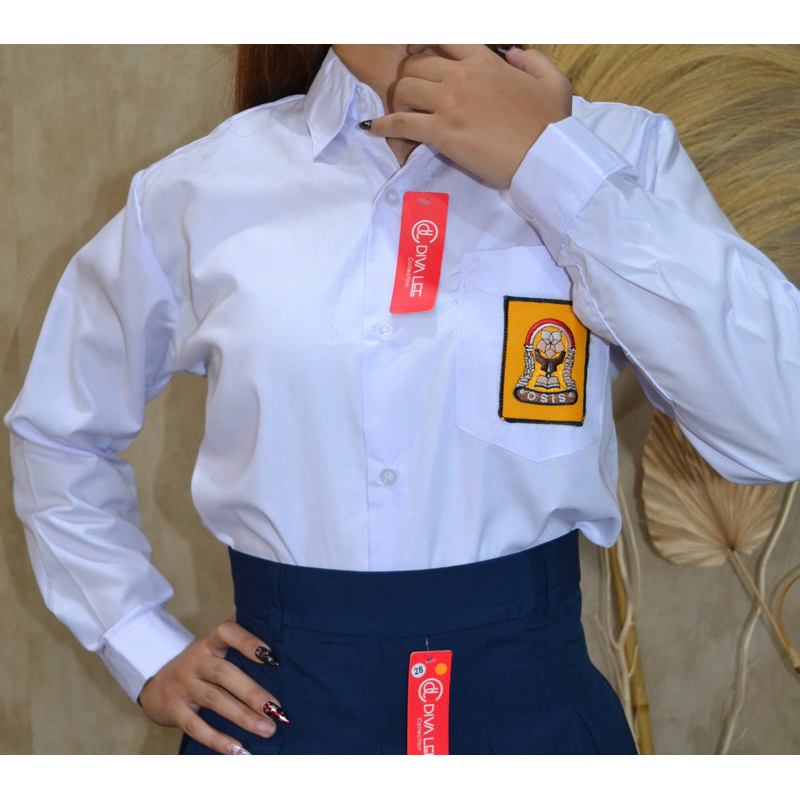 DIVA LEE Baju Putih Seragam Sekolah SMP Pria Wanita Lengan Panjang Bahan Oxford