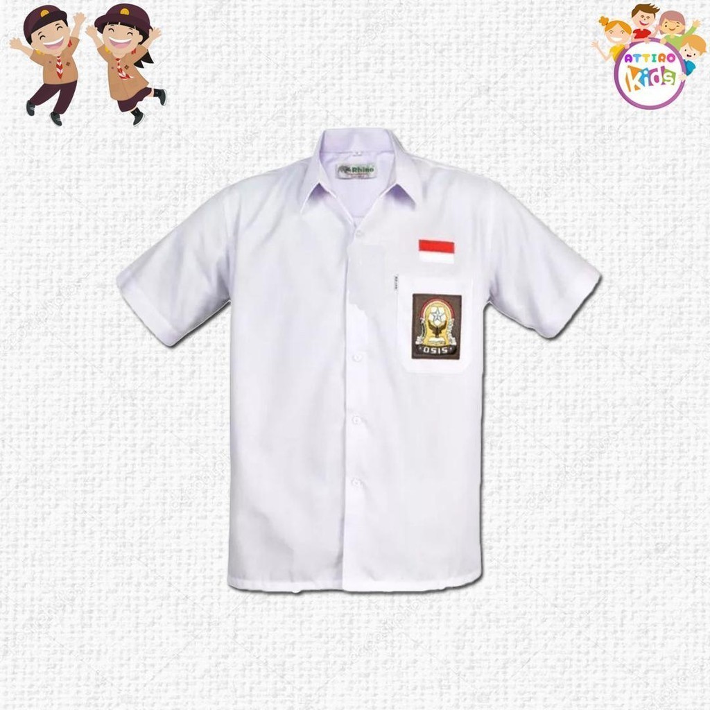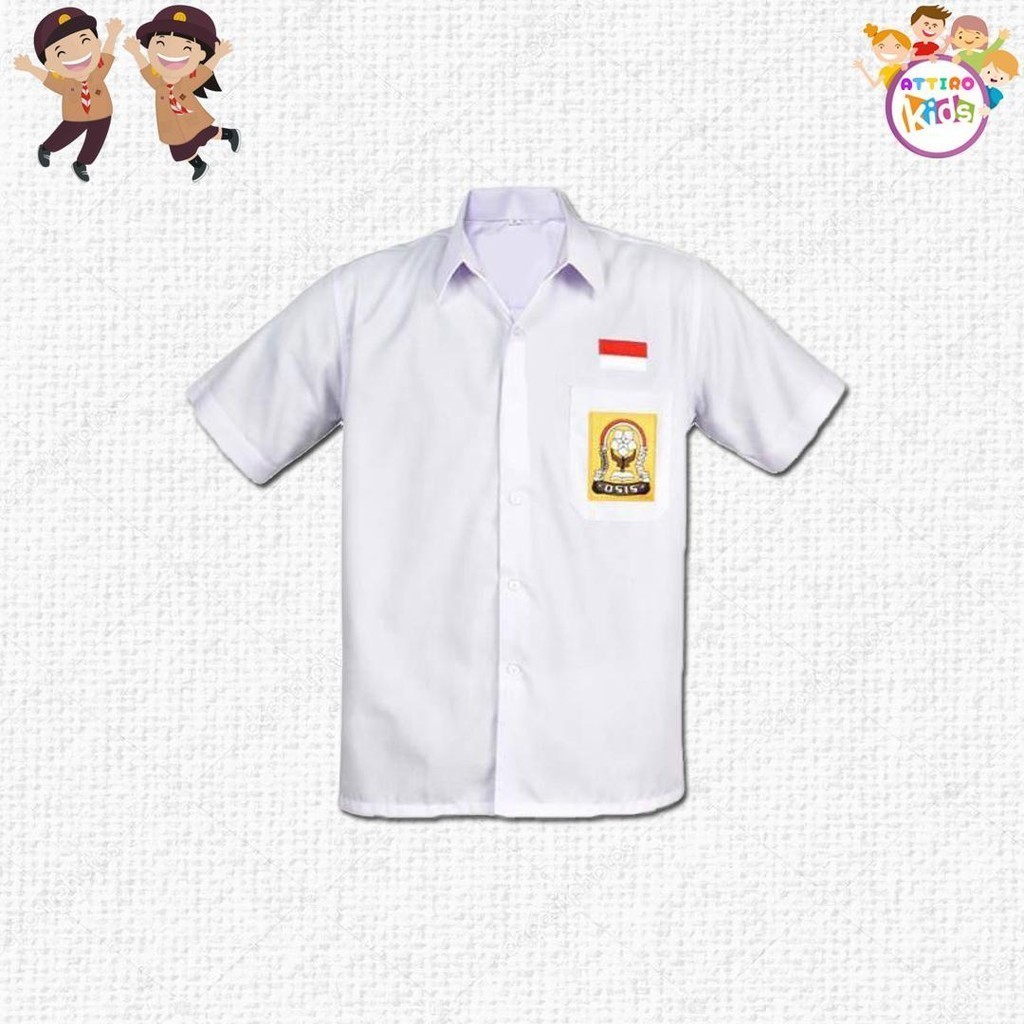 Baju Seragam Sekolah Osis SMP SMA Free Logo Osis Dan Bendera Merah Putih Lengan Pendek Bahan Katun Oxfroud Tebel