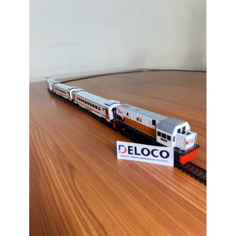 paket Rangkaian murah Mainan Kereta Api Indonesia,Lokomotif cc 201 ,2 gerbong ekonomi putih ,1 gerbong cargo