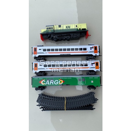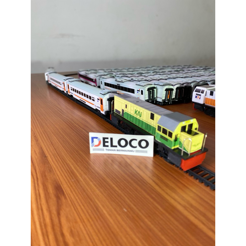 Rangkaian Mainan Kereta api,Lokomotif cc201 vintage,2 gerbong ekonomi putih dan 1 gerbong cargo,miniatur kereta api mesi