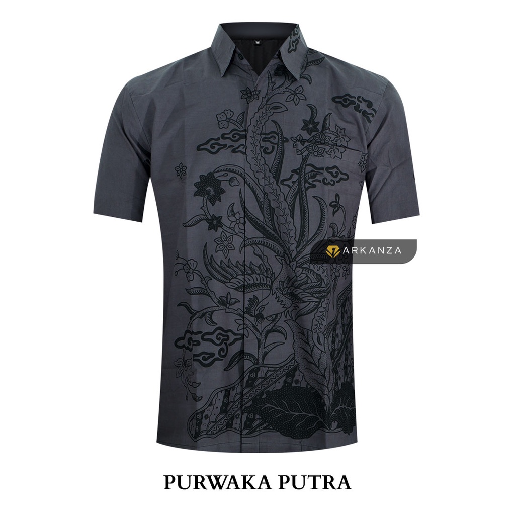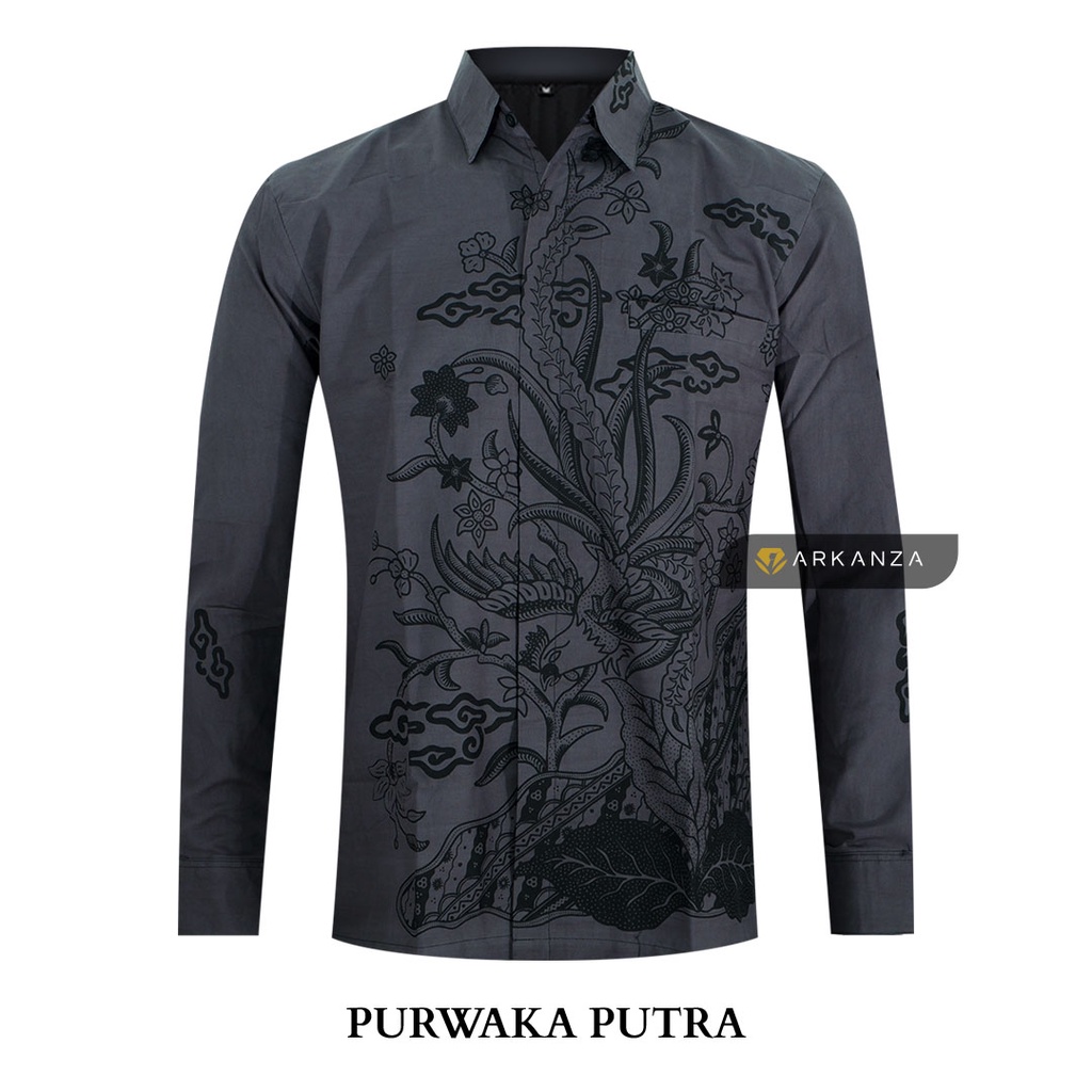 BATIK ARKANZA Motif PURWAKA PUTRA Hem Atasan Kemeja Baju Batik Pria Cowok Laki Laki Slimfit Full Lapis Furing Lengan Panjang