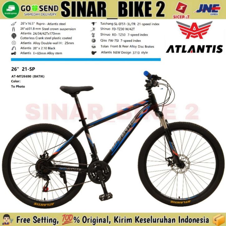 sepeda gunung dewasa mtb atlantis 690 & 730 & 735 ukuran 24" 26" 27.5" Inch 21 Speed