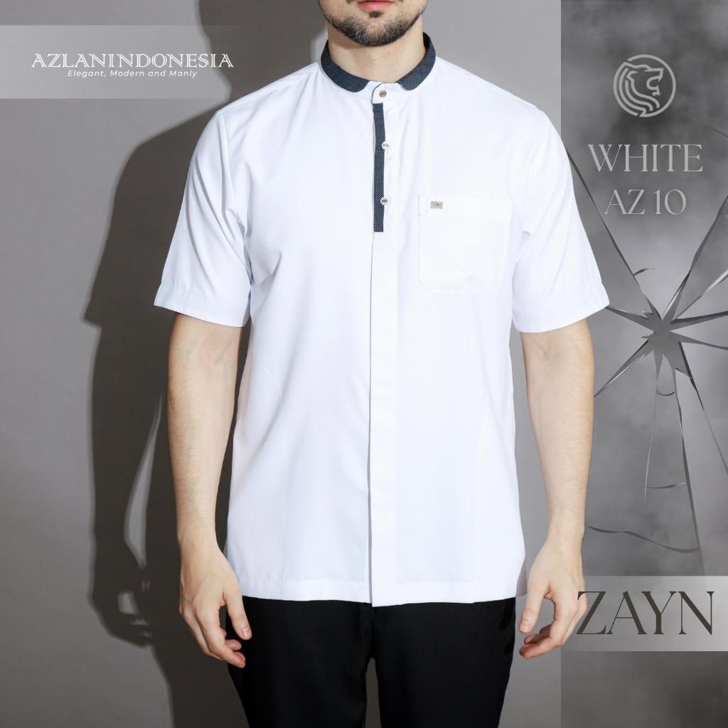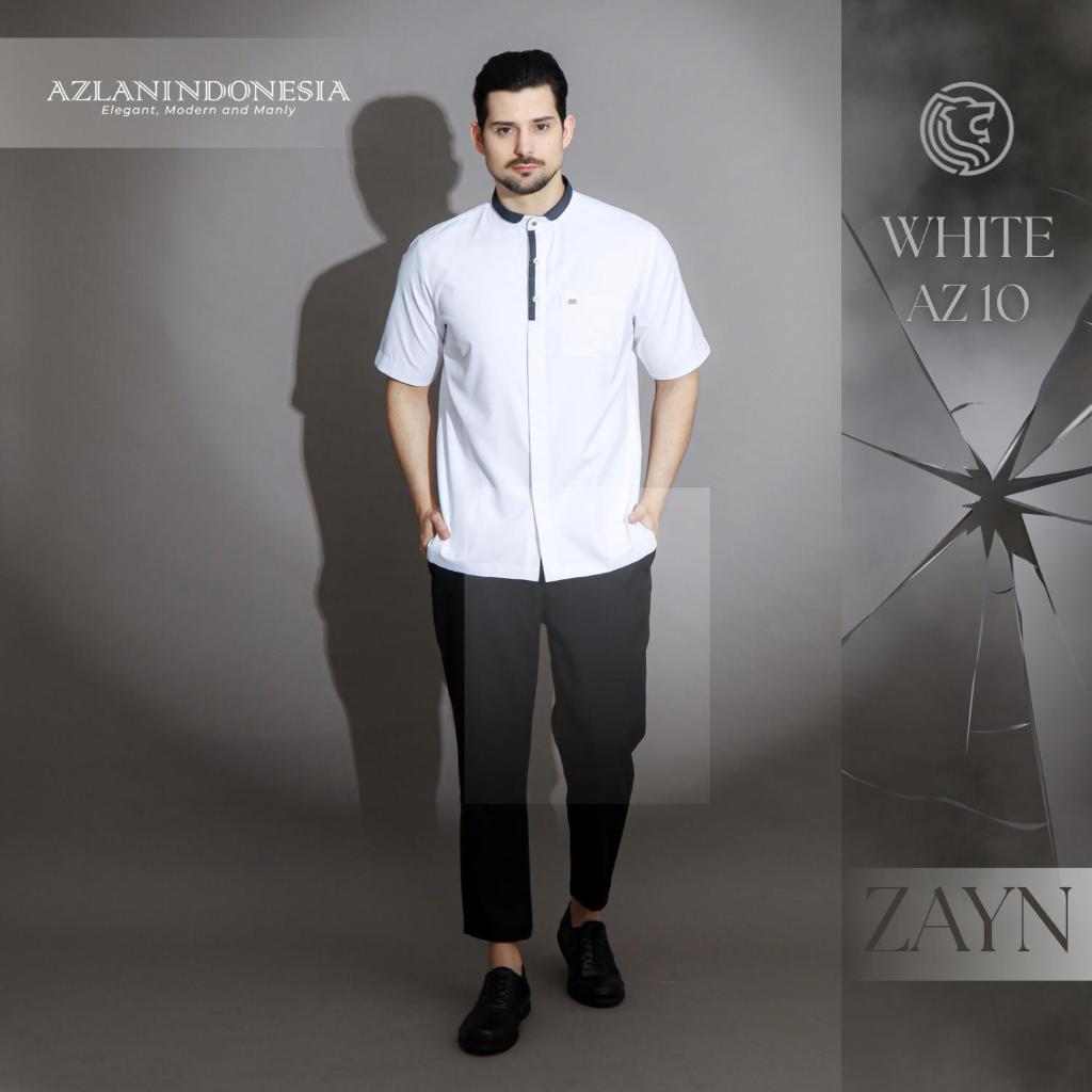 AZLAN Indonesia - Kemeja Koko Pria Zayn White Baju Muslim Pria Warna Putih Lengan Pendek AZ10