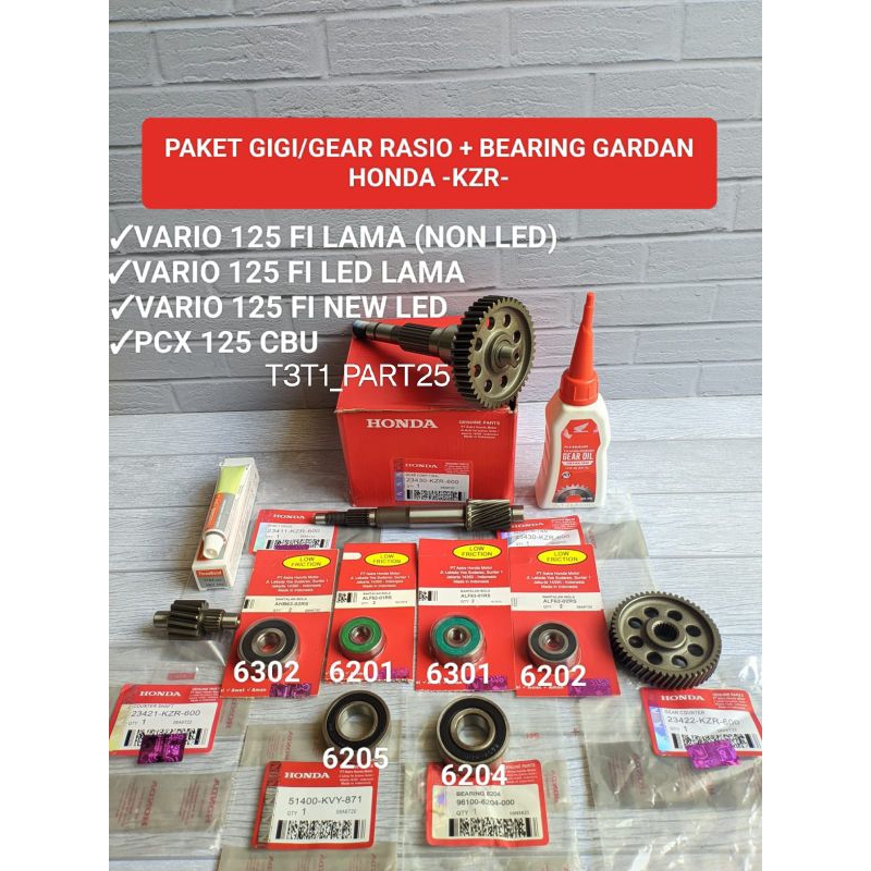 paket gigi/gear rasio (KZR) + bearing gardan vario 125 lama/vario 125 led/pcx 125 cbu