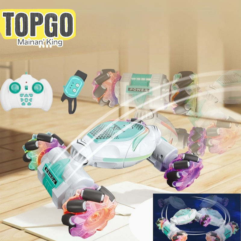 RC Stunt Drift Car 4WD Rotasi 360° Mainan Anak Mobil Dual Remote Control dengan Lampu Berwarna