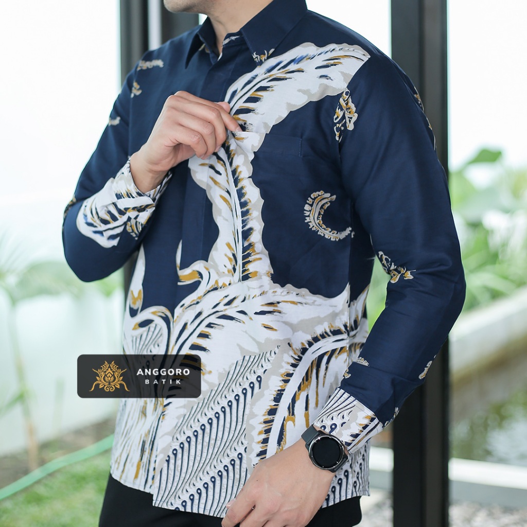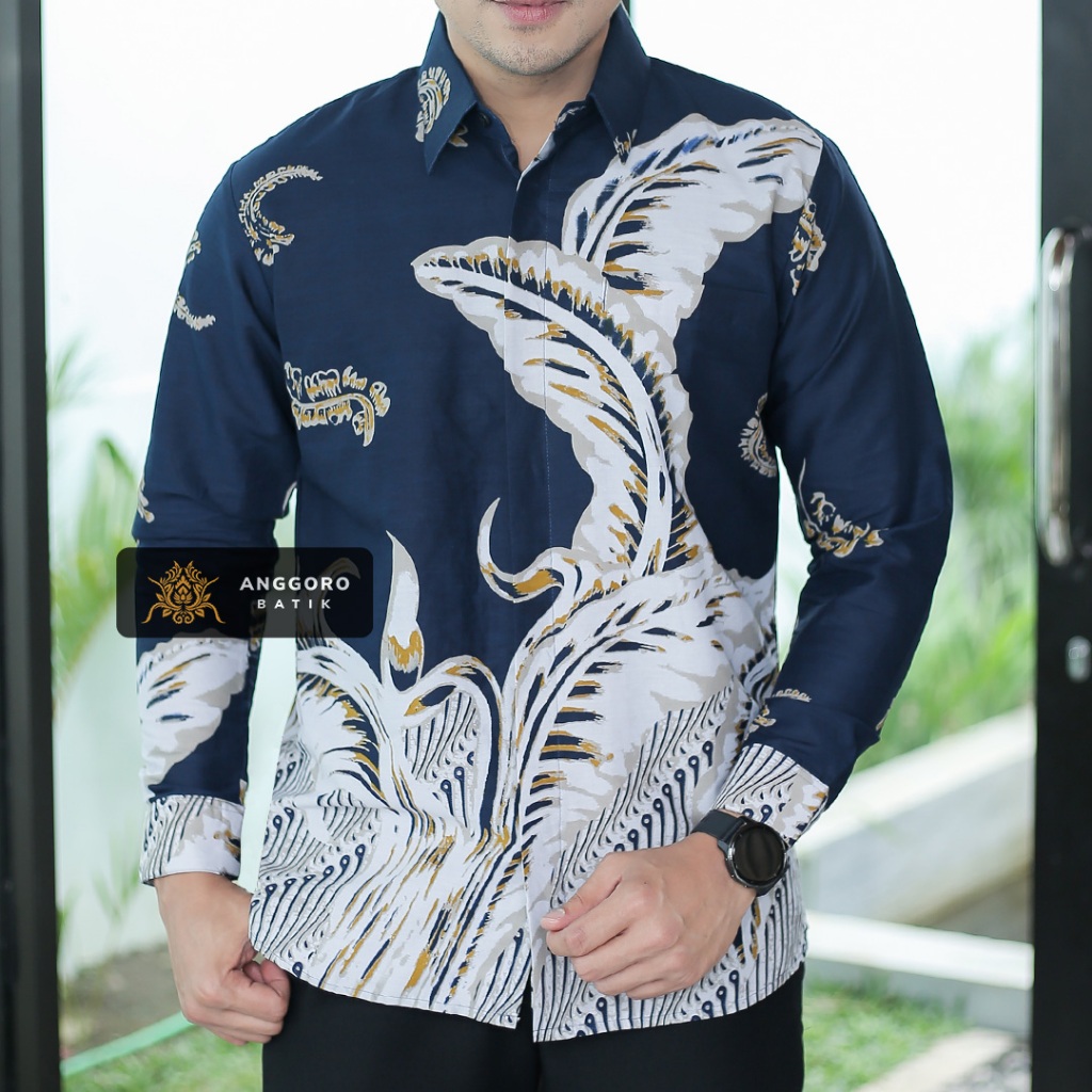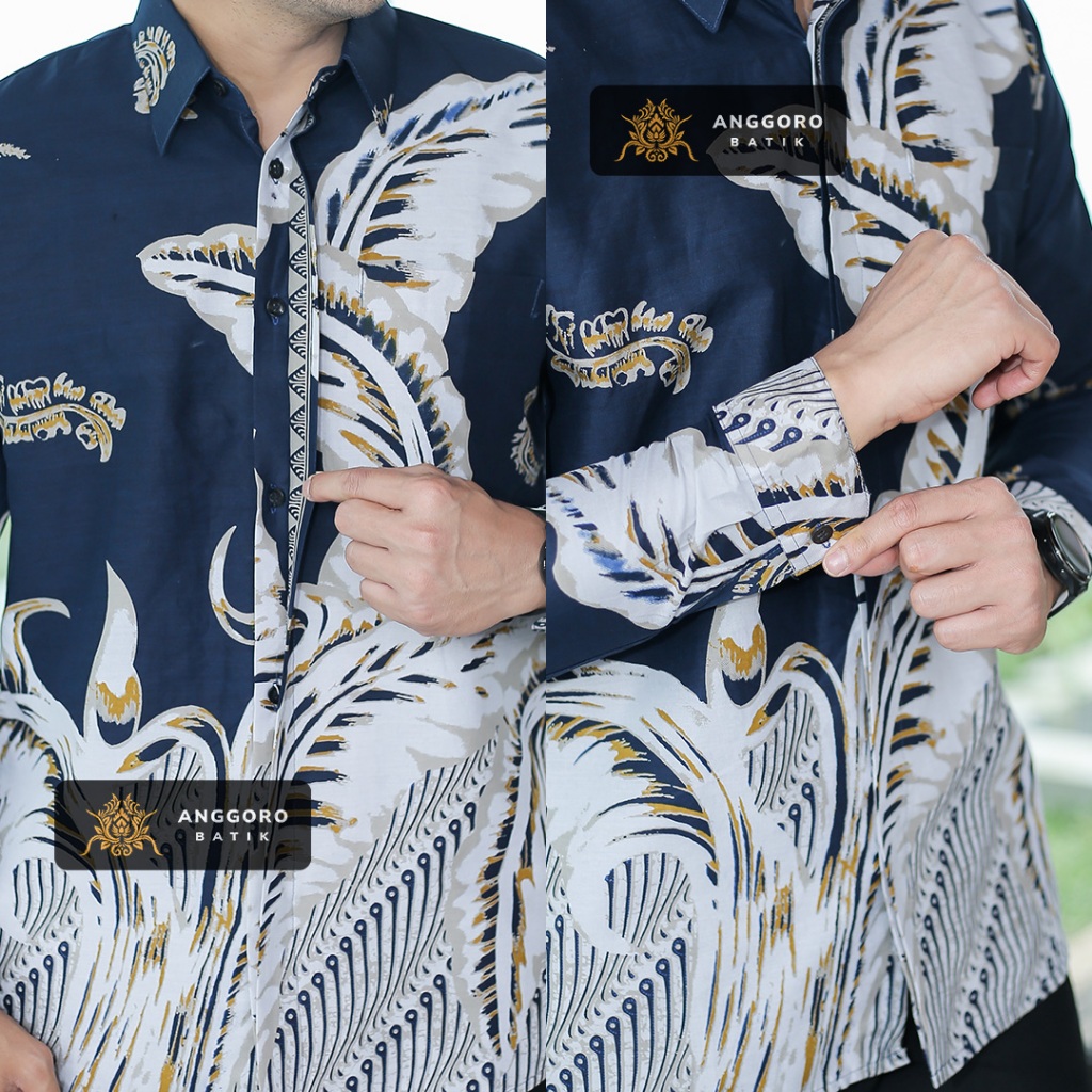 Kemeja Anggoro Batik Motif Aryasatya - Atasan Kemeja Baju Batik Pria Cowok Laki Laki Lengan Panjang Lapis Furing Slim Fit Original Bahan Katun Halus Premium Modern