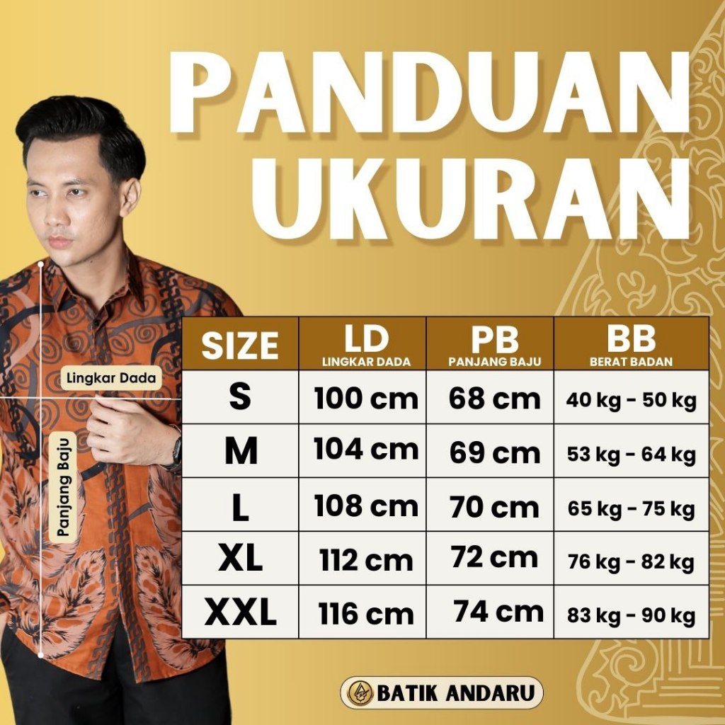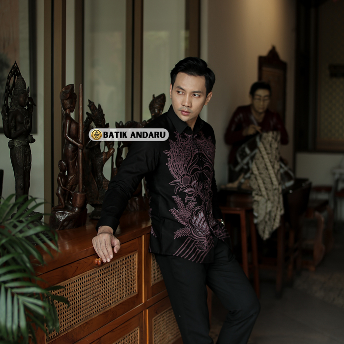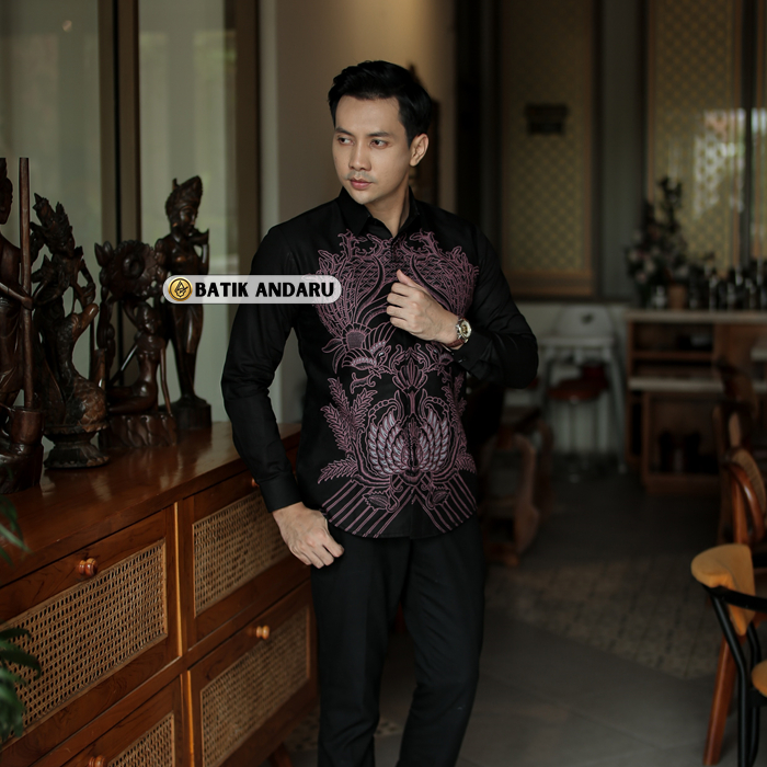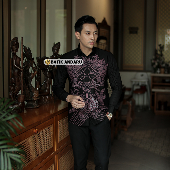Batik Andaru Motif Hasan Batik Pria Slim Fit Lengan Panjang Full Furing Erro Heem Kemeja Laskala Premium Warna Hitam Pekat