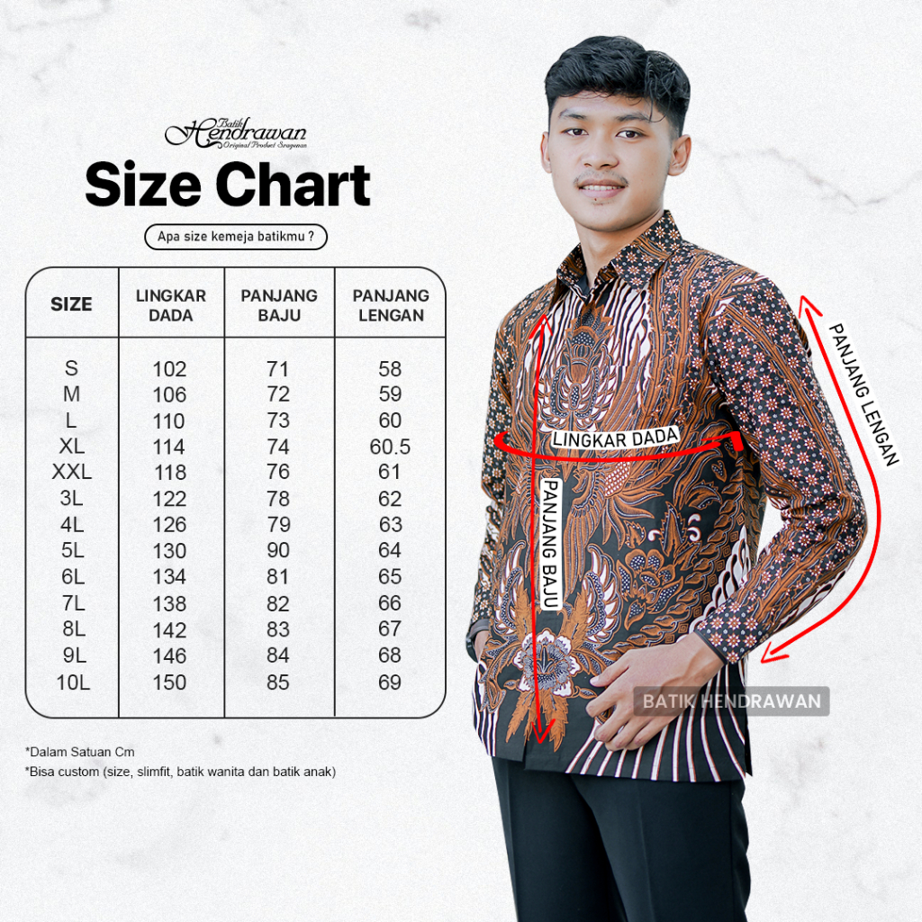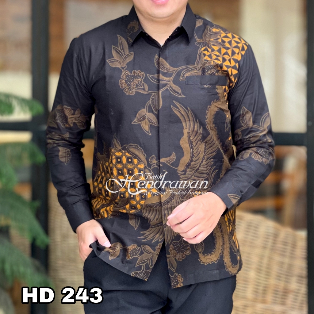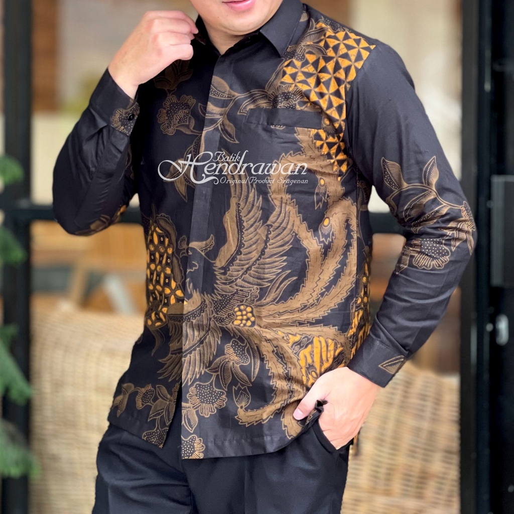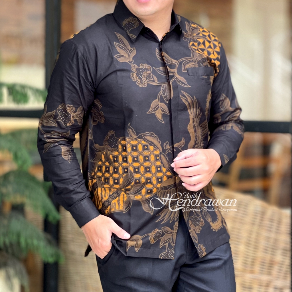 Batik Hendrawan Kemeja Batik Pria Solo Modern Lengan Panjang Lapis furing Bahan Katun Premium HD 243