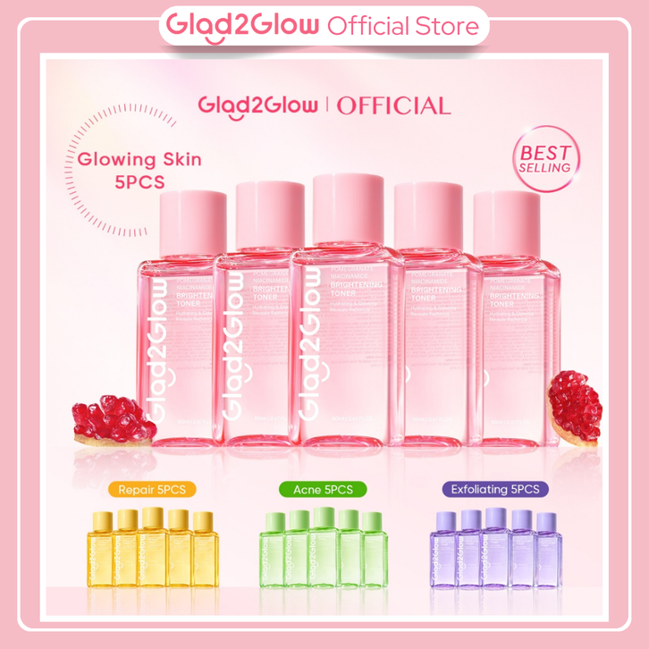 GLAD 2 GLOW Official Store 5pcs G2glow 1 Paket Moisturizer Toner Series Brightening Skincare Wajah Glad2Glow Sepaket G2g