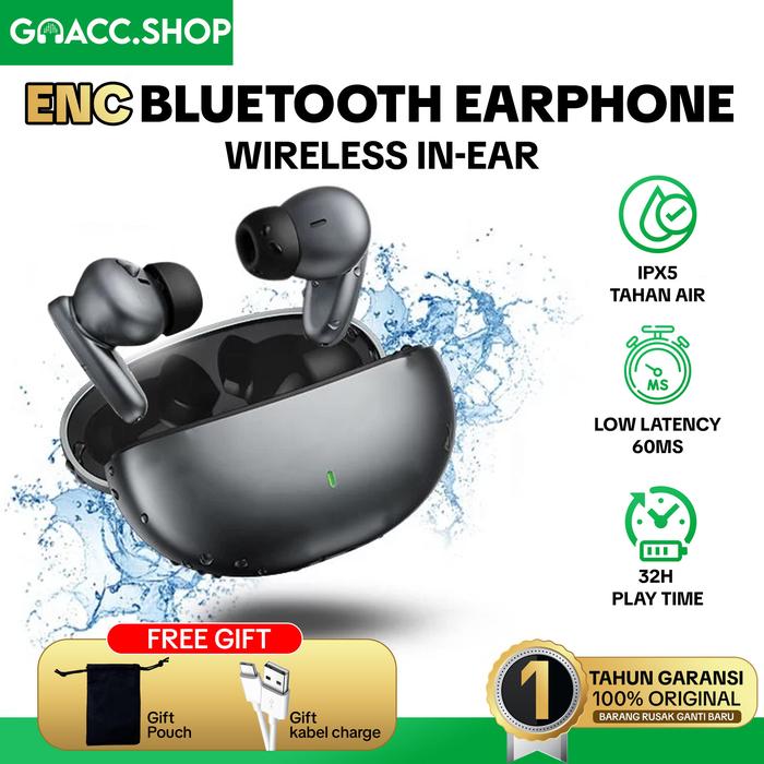 【-】Earphone Fitur ENC Pengurangan Kebisiangan Bluetooth 5.3 TWS Touch Control Gaming Anti Delay EP51C - EP51C - Black