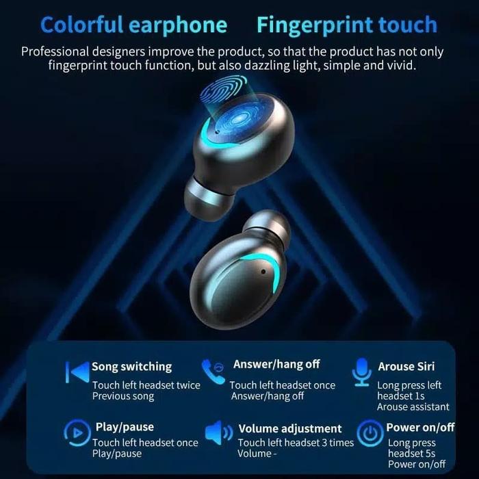 Promotion Top Value TWS F9-5 Bluetooth Headset Wireless Touch Display - Black