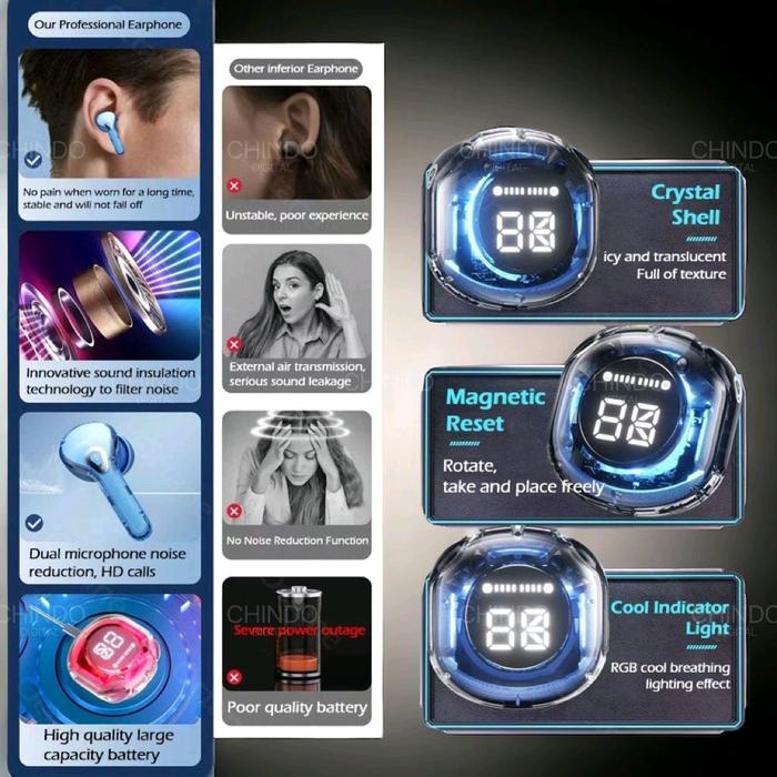 Earphone Bluetooth Nirkabel TWS 5.3 CID18 dengan Mikrofon dan Pengisian Casing - Earbud Headset Wireless Led - BLACK