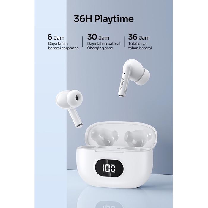 Airbuds TWS ROBOT T70 Headset Bluetooth Earbuds Wireless LED Display Earphone - Garansi Resmi 1 Tahun - Black