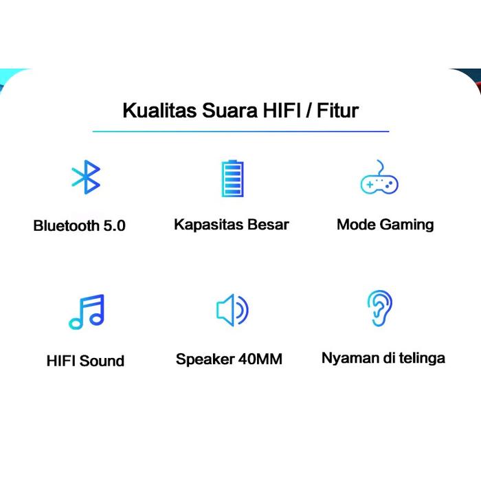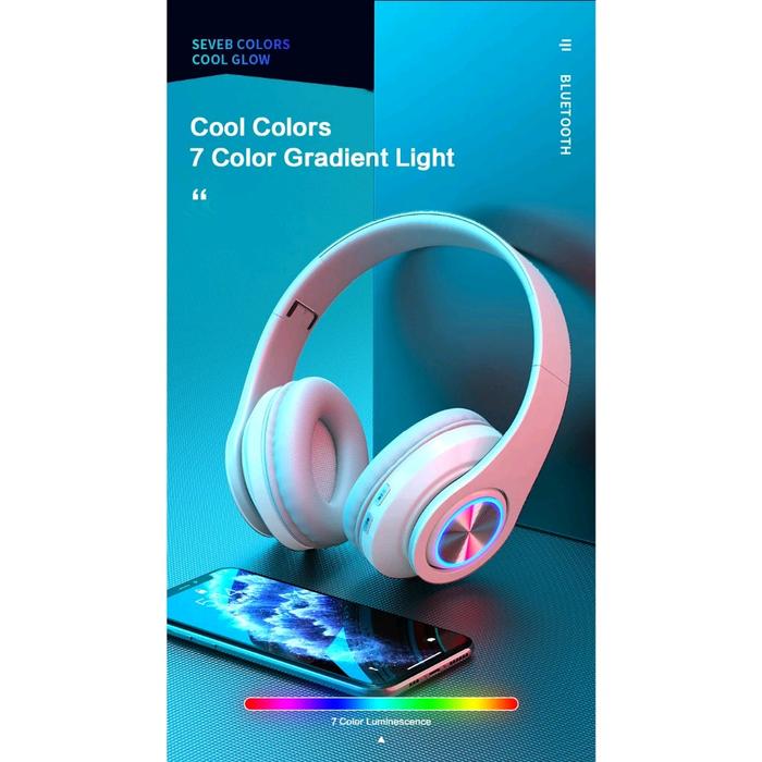 B39 Bluetooth Wireless Headphone Headset TWS Bluetooth 5.0 with Mikrofon HiFi Bass RGB LED Light Earphone - B39-WHITE