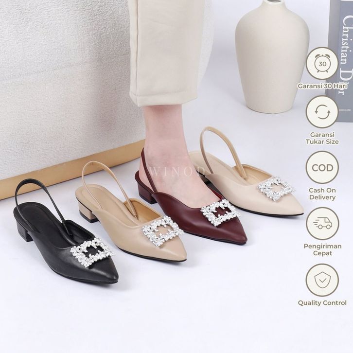 WINOD Camelya Mules Wanita Heels Pesta Kondangan Hak 3cm Daily