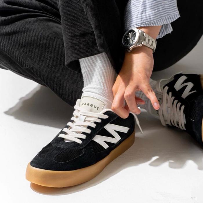SEPATU MARQUE Gustav Series Classic Extray - Black Hitam Corduroy Suede Light Gumsole