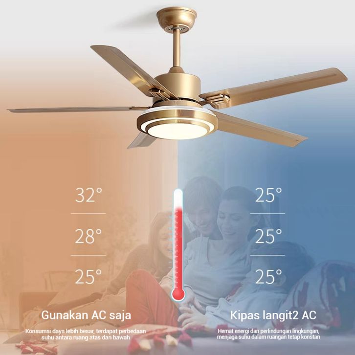 Lampu Kipas Angin Plafon Stainless Steel Angin Tinggi 52 Inci Lampu Kipas Restoran Minimalis Modern Lampu Kipas