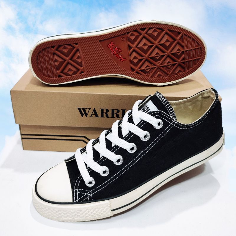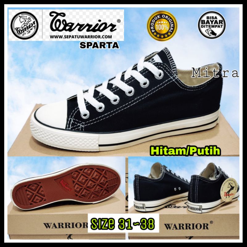 WARRIOR Sepatu Sekolah Anak Cowok Cewek Kecil Tanggung Warior Sparta Low Pendek Tali Hitam Putih Size 31 sd 38 Berkualit