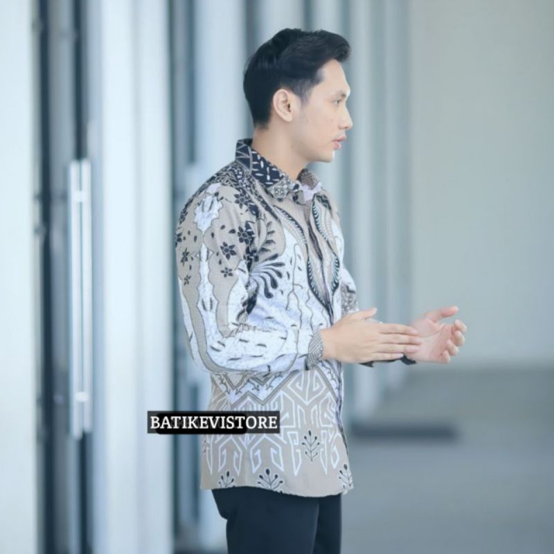 BATIK EVI - Batik Gentala | Corak Cream Putih | Kemeja Lengan Panjang | Batik Slimfit | Bahan Katun Premium | Katun Lapis Furing | Outfit Adem Original | Garansi 100 PERSEN