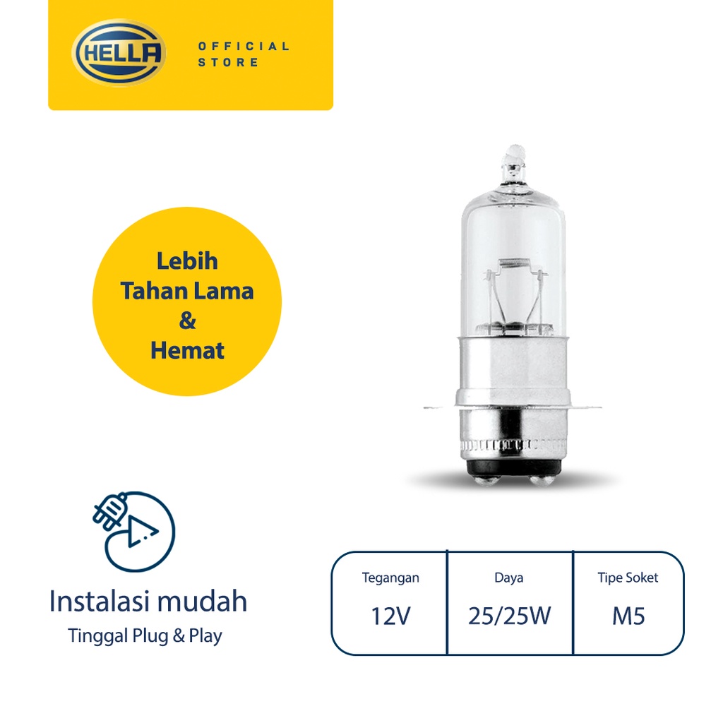 HELLA LAMPU MOTOR BOHLAM HALOGEN M5 12V 2525W P15D251 AKSESORIS MOTOR LAMPU BOHLAM UNTUK TIPE MOTOR MANUAL DAN MATIC