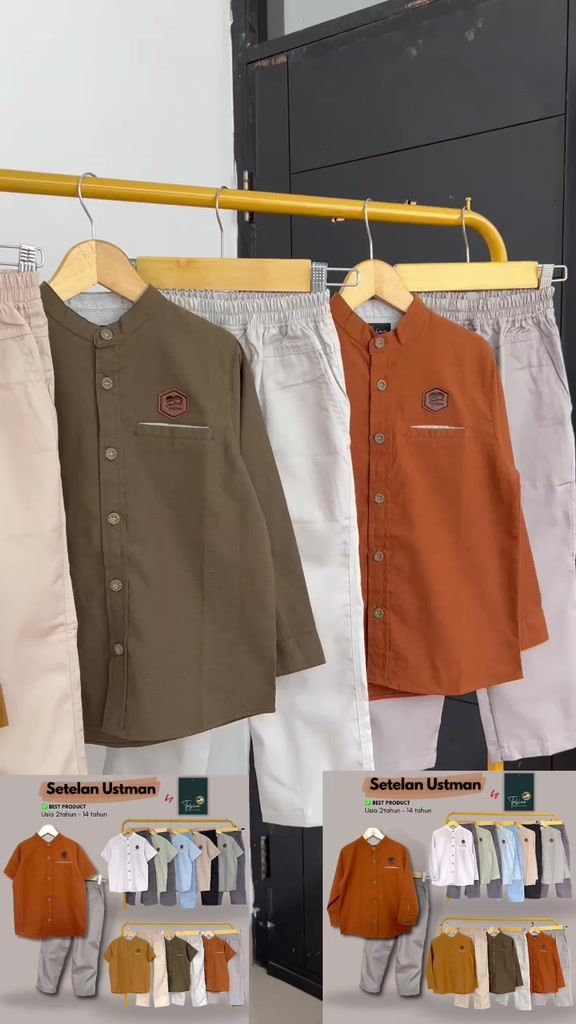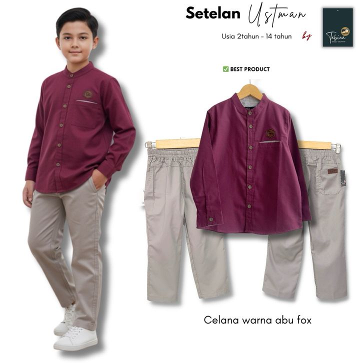 Setelan Kemeja Koko Lengan Panjang Tabina seri Ustman usia 2 - 14 tahun