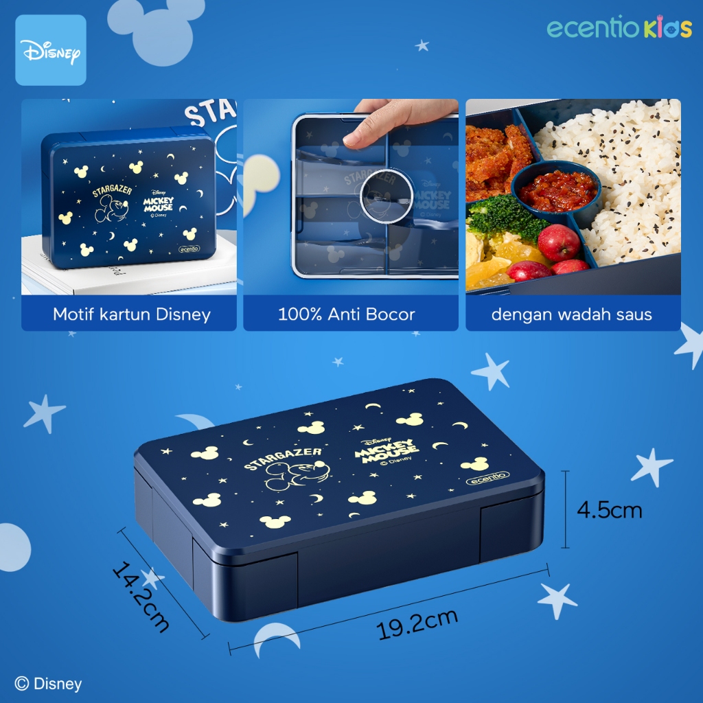 【LIVE EXCLUSIVE✨】ECENTIO TEMPAT MAKAN ANAK DISNEY SERIES LUCU SEKOLAH BPA FREE BAYI ANTI TUMPAH LUNCH BOX