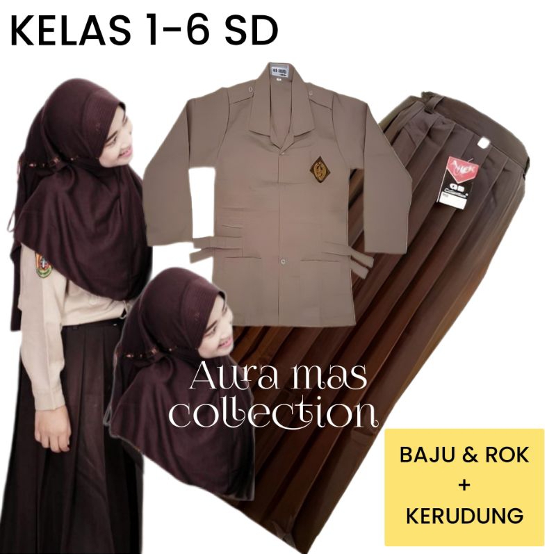 SETELAN SERAGAM SEKOLAH SD PRAMUKA MERAH PUTIH SIAGA PEREMPUAN KELAS 1 - 6 PAKET PREMIUM