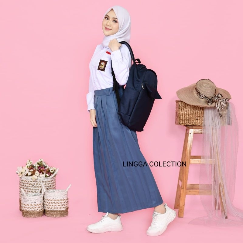KEMEJA SMA WANITA, ROK REMPEL DEPAN, ROK FUL REMPEL