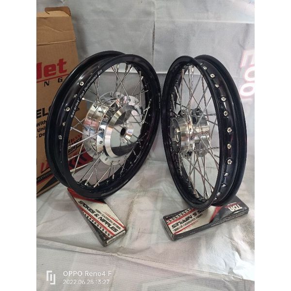 RODA VELG PAKETAN MOTOR HONDA VARIO, BEAT,SCOPI, KOMPLIT MEREK SCARLET RACING ORIGINAL SEPASANG WARNA HITAM RING 14 X16